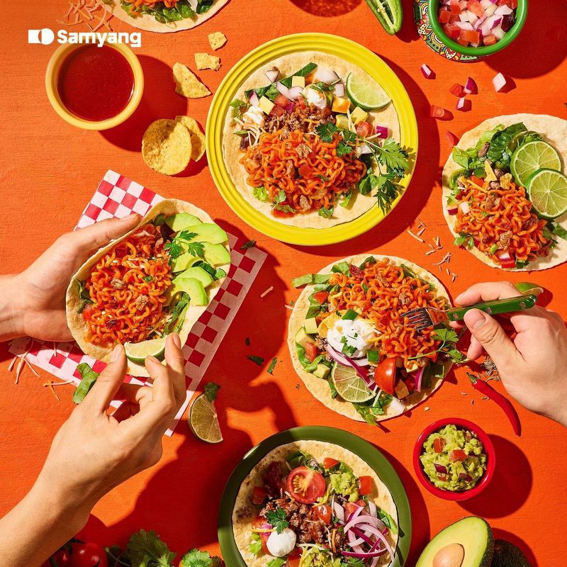 - - Mildly spicy Buldak ramen with a unique taco-inspired flavor