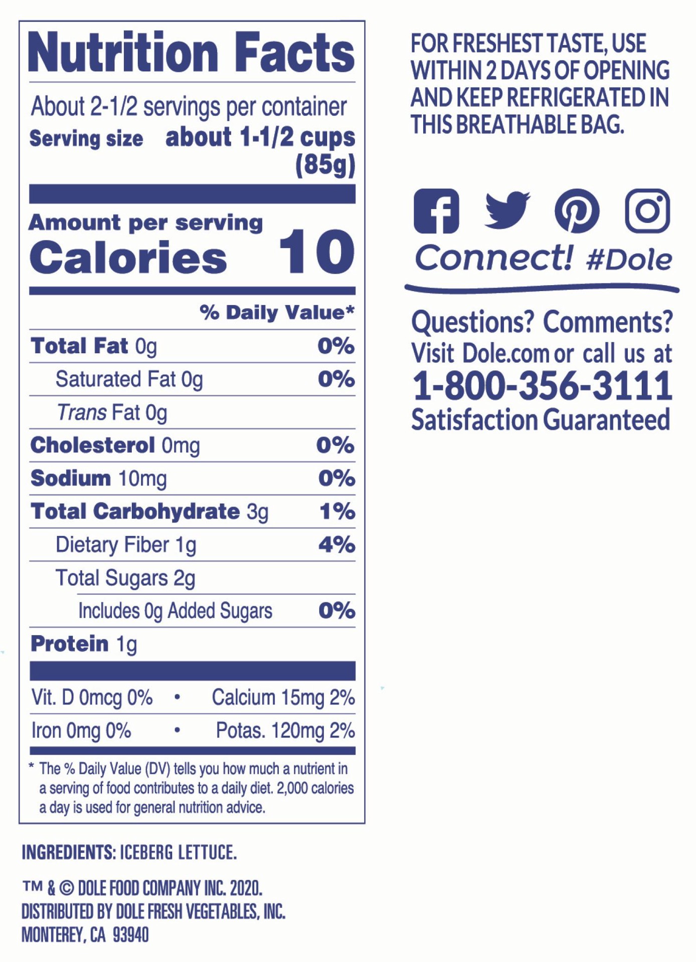 Dole Salad Shredded Lettuce, 16 Oz