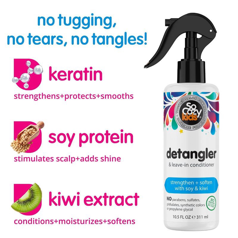 SoCozy Kids Detangler + Leave-in Conditioner is a premium quality, salon formula, ultra-rich conditioner that instantly removes tough knots and tangles - all before bath time is over! Infused with Alo…