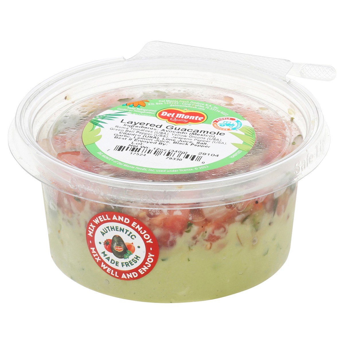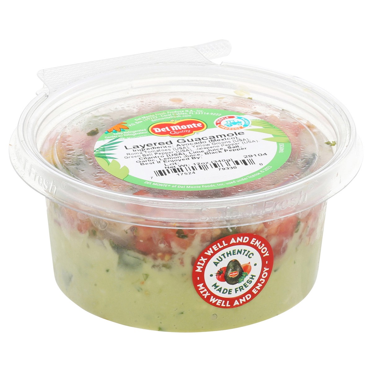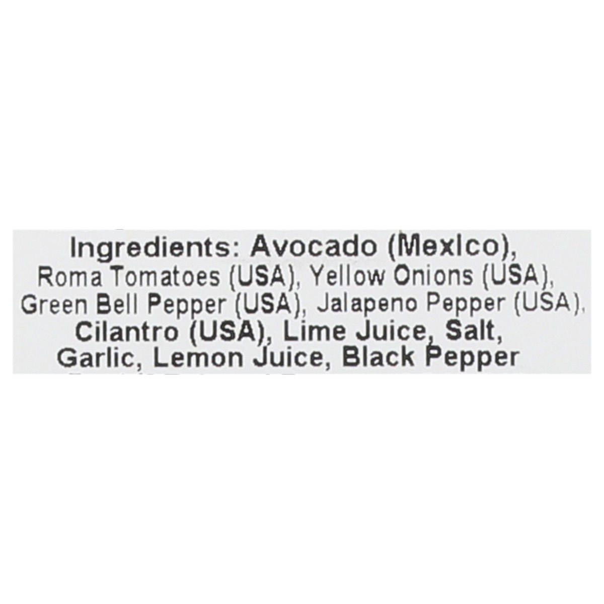 Avocado (Mexico), Roma Tomatoes (USA), Yellow Onions (USA), Green Bell Pepper (USA), Jalapeno Pepper (USA), Cilantro (USA), Lime Juice, Salt, Garlic, Lemon Juice, Black Pepper.