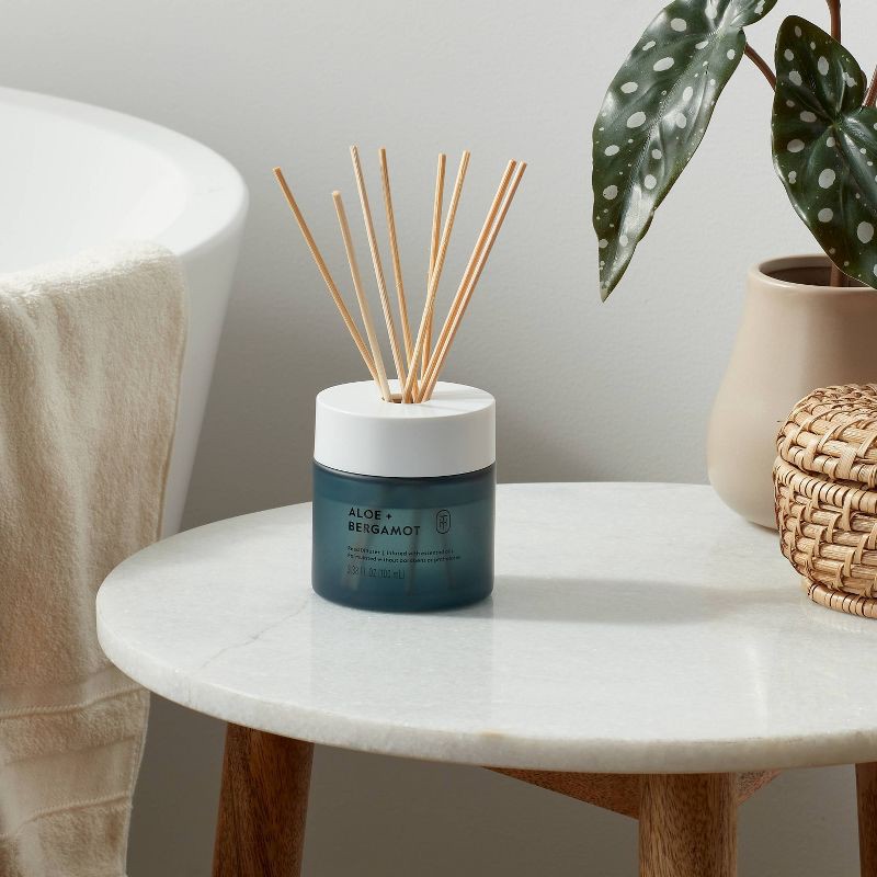 Uplift your space with the Glass Reed Diffuser Aloe and Bergamot 3.4 fl oz from Threshold™. Infused with the calming essence of aloe with soft hints of bergamot, this 3.4 fl oz diffuser creates a sere…