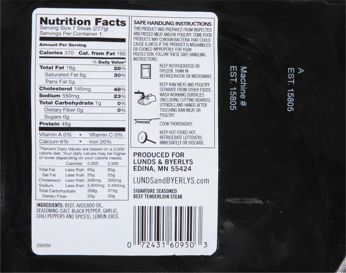 Lunds & Byerlys Signature Seasoned Beef Tenderloin Steak 8 oz