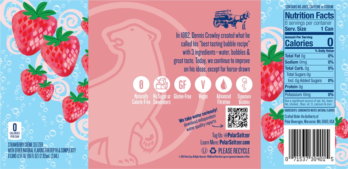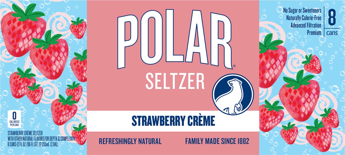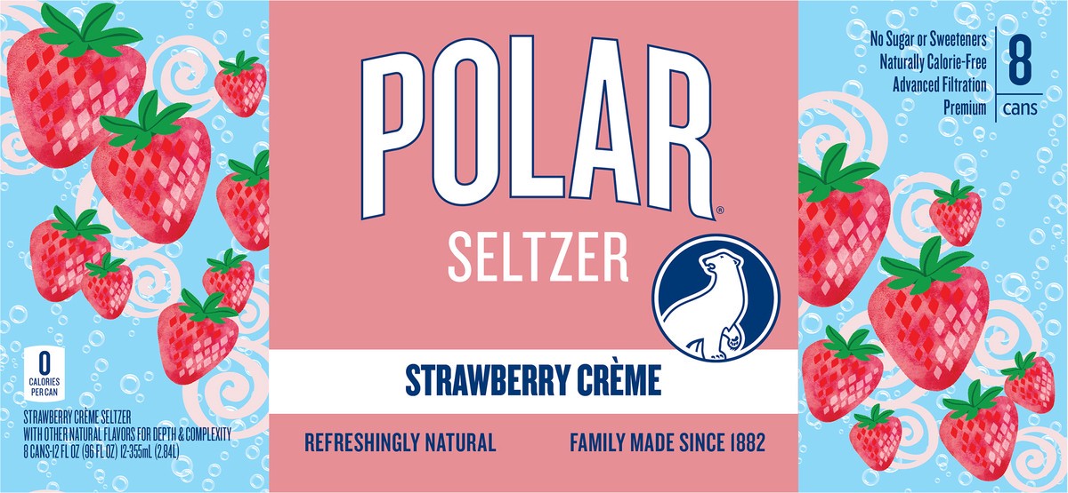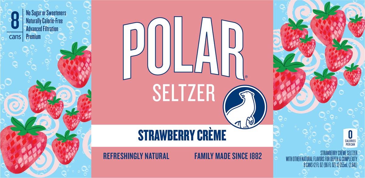 Strawberry creme seltzer with other natural flavors for depth & complexity. 0 calories per can. Gluten free. Vegan. No sugar or sweeteners. Naturally calorie-free. Refreshingly natural. Family made si…