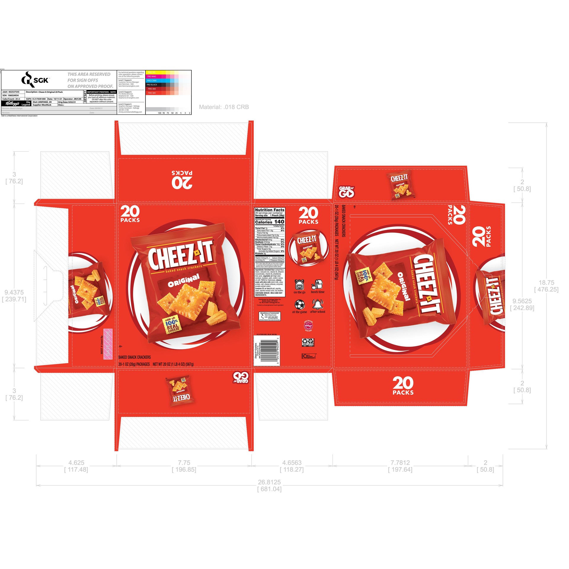 Cheez-It Cheese Crackers Original Baked Snack Crackers 20 Count - 20 Oz