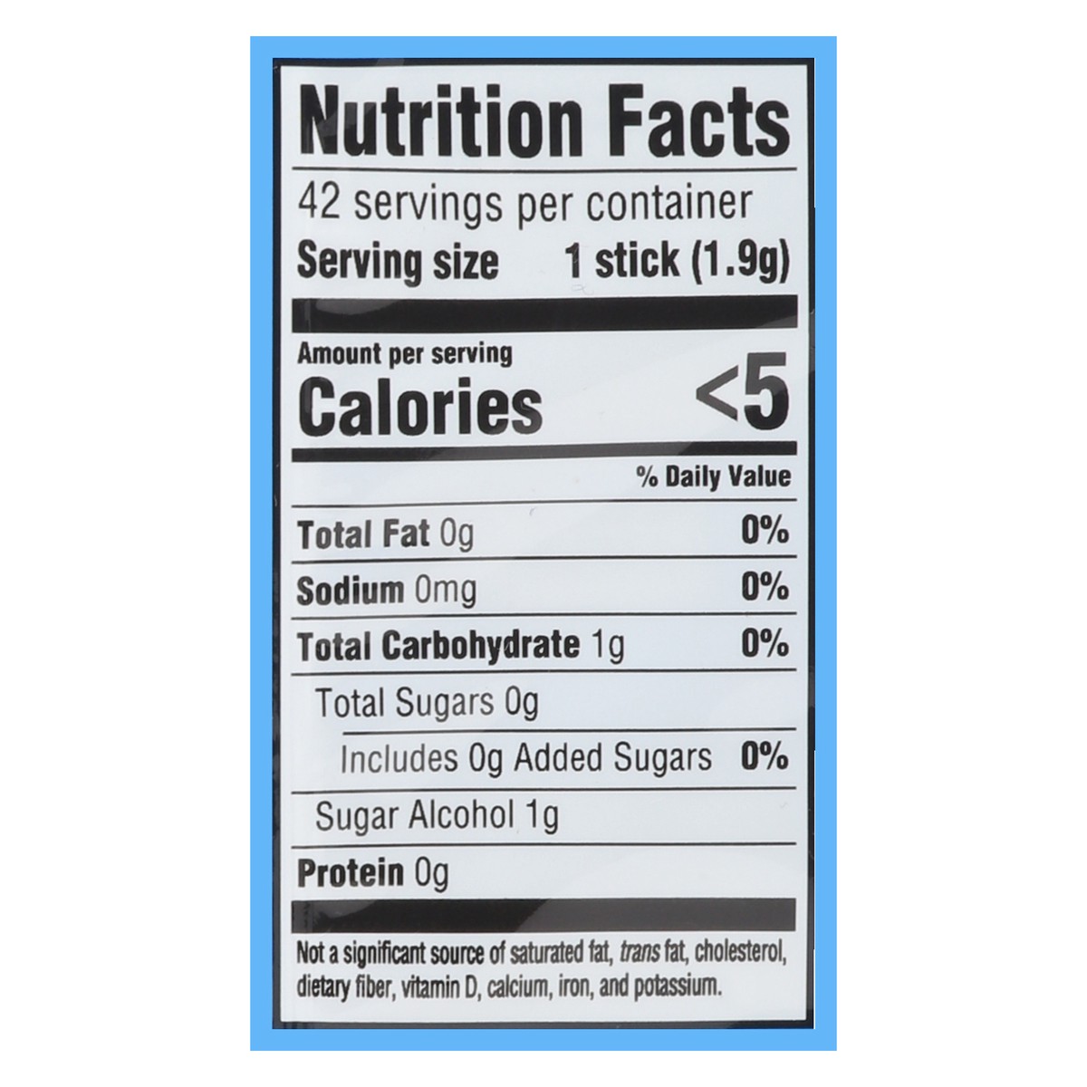 Sorbitol, Gum Base, Xylitol, Glycerin, Natural and Artificial Flavor, Less than 2% of: Acesulfame Potassium, Aspartame, BHT (to Maintain Freshness), Blue 2 Lake, Mannitol, Soy Lecithin, Sucralose.
