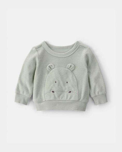 Carter's Baby Hippo Terry Pullover Sweatshirt - Green Grey 18M