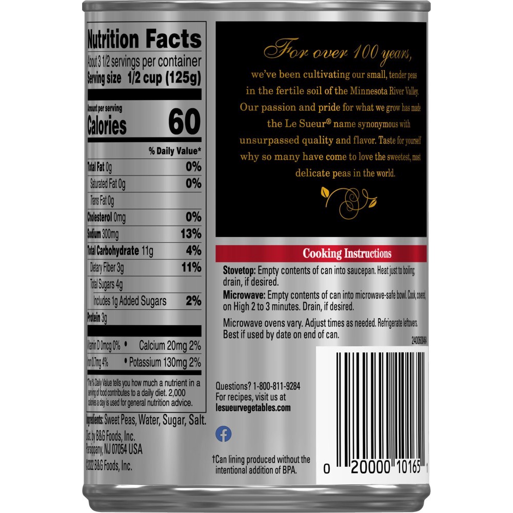 No preservatives. For over 100 years, we've been cultivating our small, tender peas in the fertile soil of the Minnesota River Valley. Our passion and pride for what we grow has made the Le Sueur name…