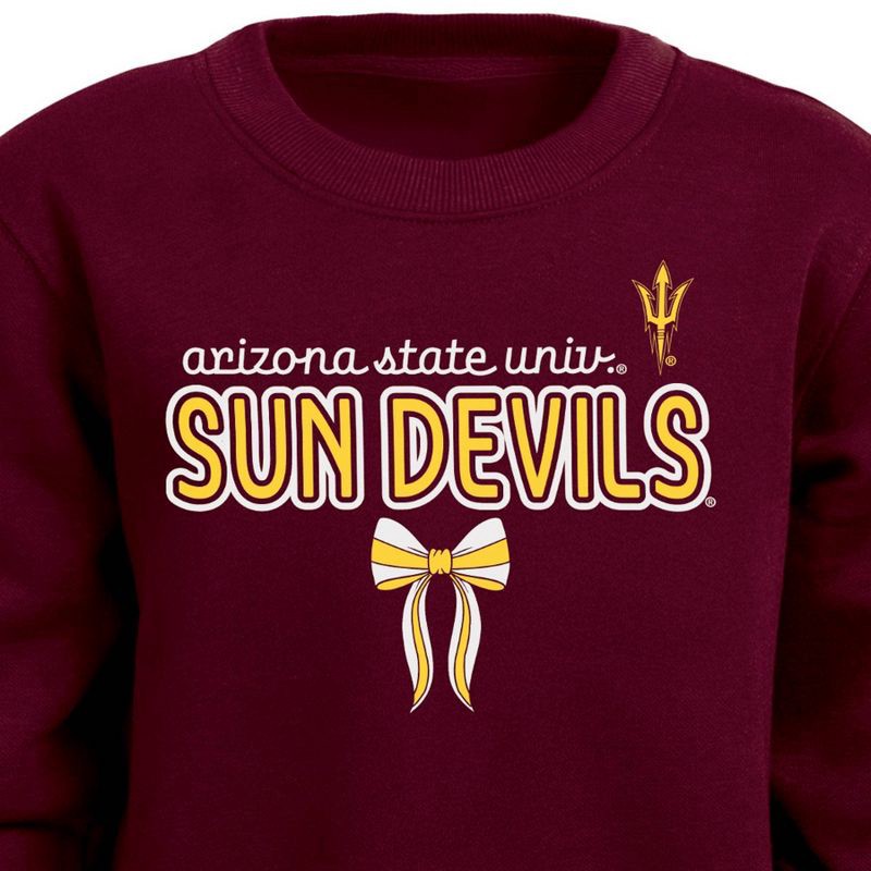 Show your school spirit in this officially licensed NCAA girls' relaxed fit crew neck fleece. Designed with forward side seams for a flattering silhouette, it features a specialty puff ink team graphi…