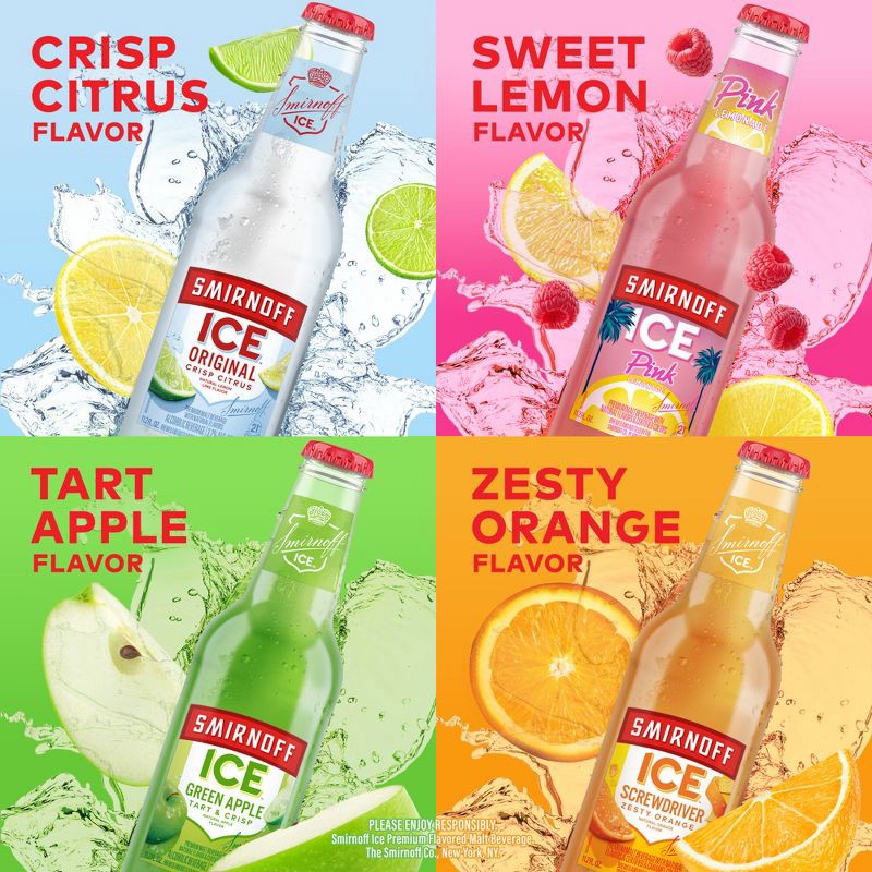 - A light tasting and flavorful drink with a crisp taste and bubbly finish, this Smirnoff Ice Variety Pack includes four popular Smirnoff Ice flavors: Original, Screwdriver, Green Apple and Pink Lemonade
