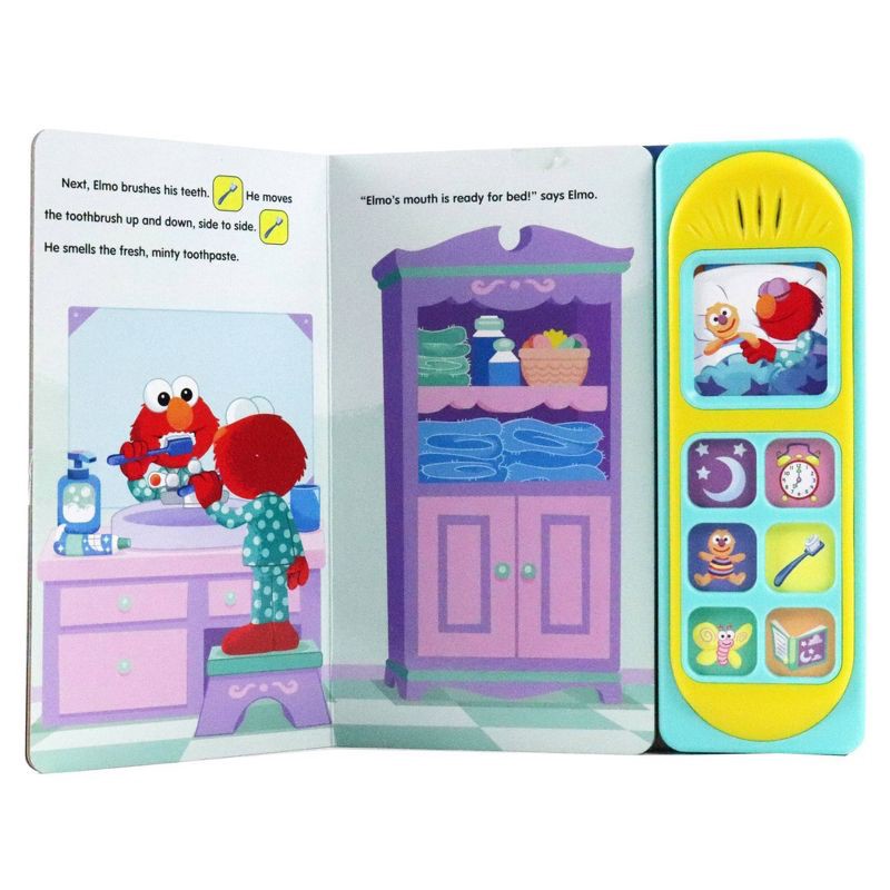 Follow along as Elmo gets ready for bed in this soothing sleepy-time story. Press 7 interactive buttons to hear calming music and sounds. Matching words with pictures and sounds enhances reading compr…