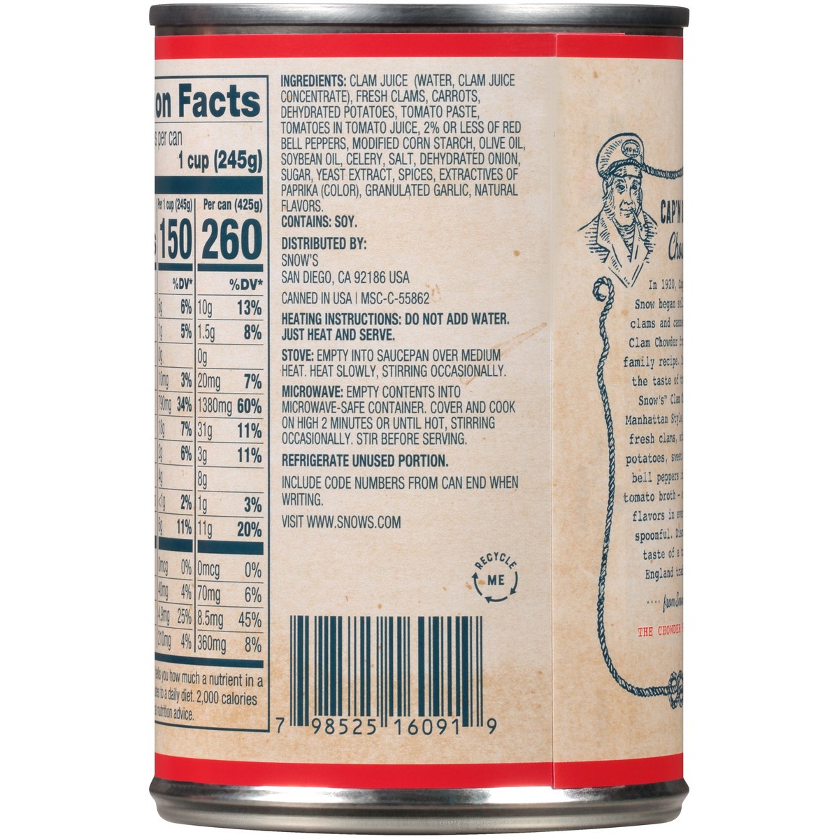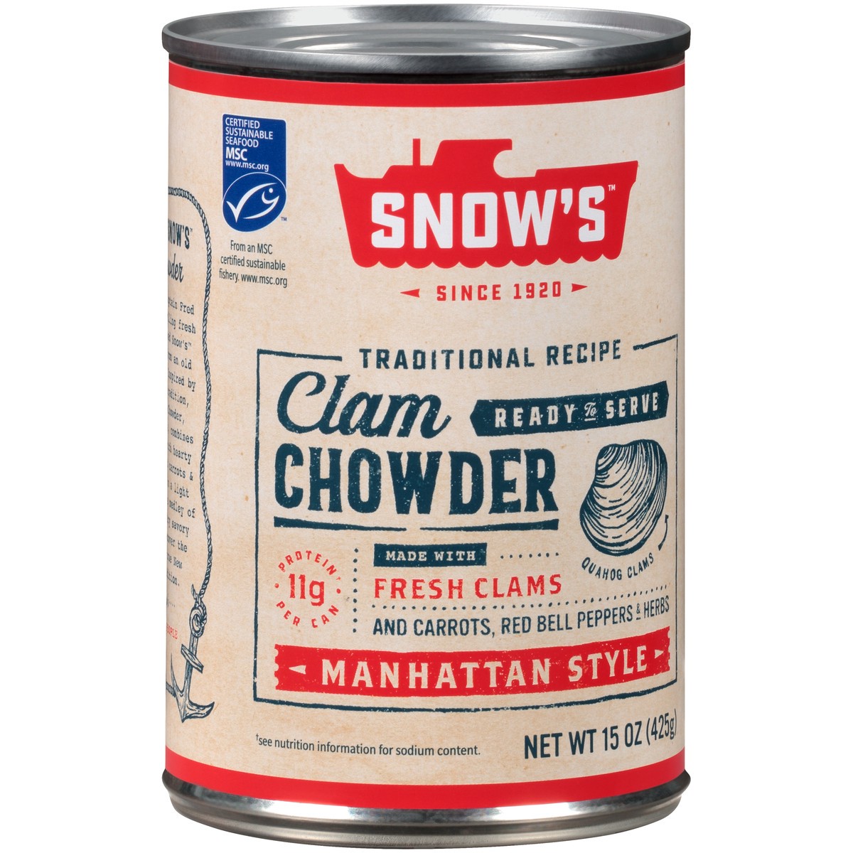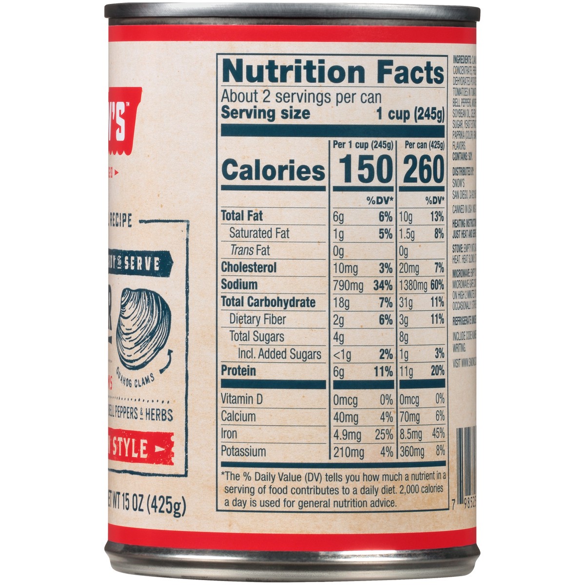 Made with fresh clams and carrots, red bell peppers & herbs. 11 g protein per can. See nutrition information for sodium content. Since 1920. Traditional recipe. Ready to serve. Include code numbers fr…