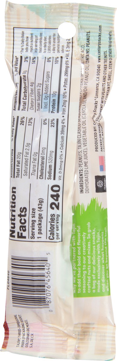Peanuts, Tajin Clasico Seasoning (Chili Peppers, Sea Salt, Citric Acid, Dehydrated Lime Juice), Vegetable Oil (Canola Oil and/or Peanut Oil).