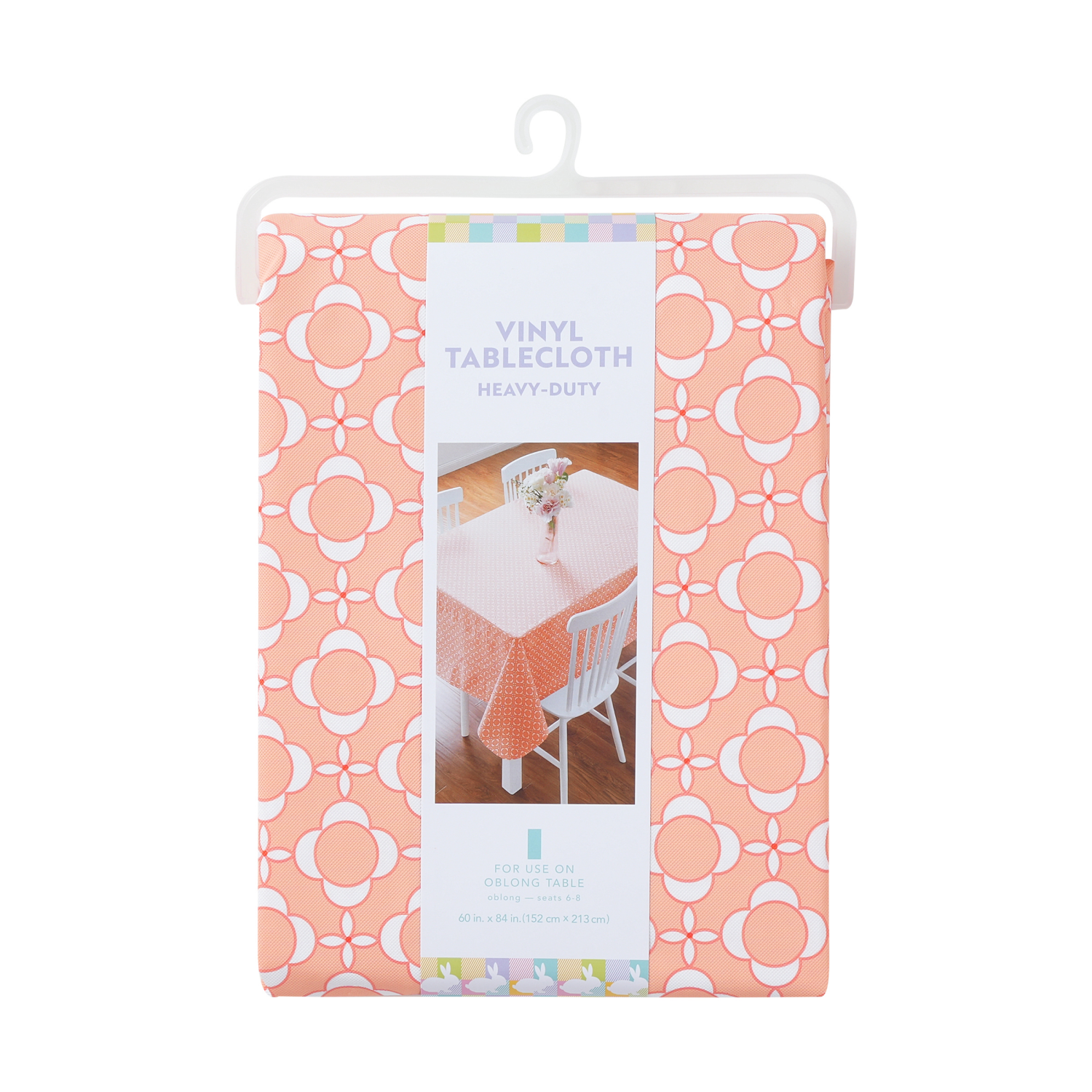 Meijer Corporate Seasonal Mcs Easter Geo Coral Peva Tablecloth, 60 In X 84 In