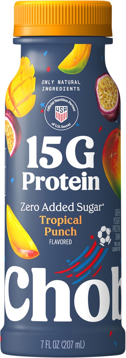 Enjoy this Tropical Punch-flavored yogurt shake from Chobani! It's crafted with 15g of protein and 0g of added sugar**Not a low calorie food.