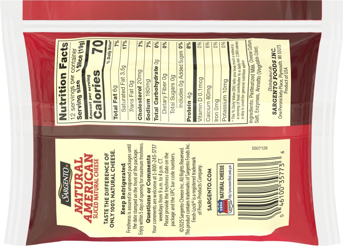 Taste the difference of Sargento Natural American Cheese slices. In the American Cheese category, Sargento cheese just set a new standard. Made with only 5 ingredients, unlike other American cheese sl…