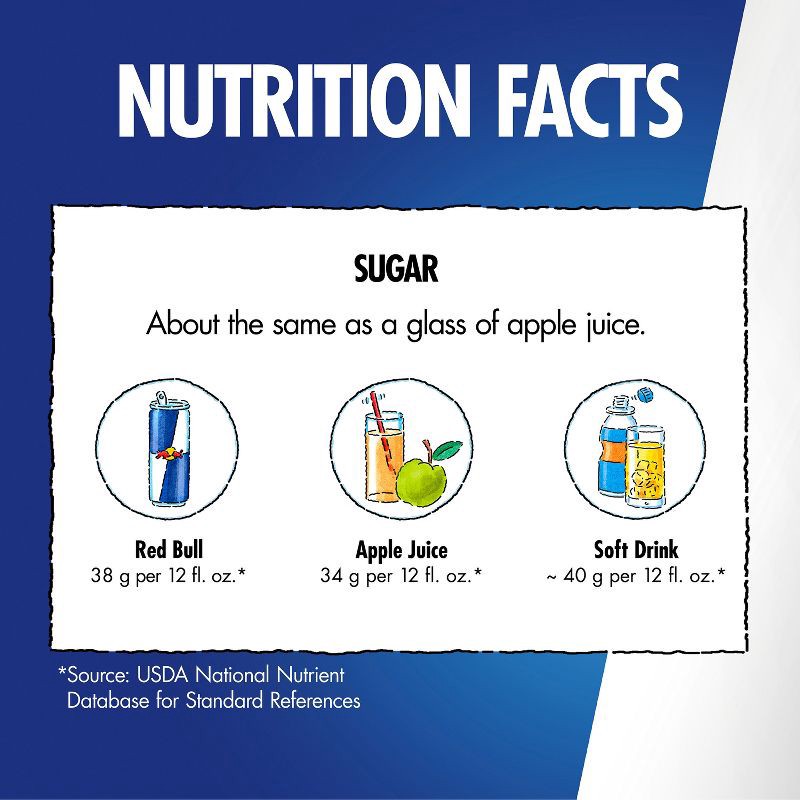 - Each 12 fl oz can contains 160 calories, 114mg of caffeine which helps to increase alertness, plus 38g of real sugar similar to a glass of apple juice of the same size. Trusted and consumed by world renowned athletes and everyday fitness enthusiasts