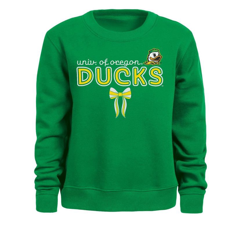 Show your school spirit in this officially licensed NCAA girls' relaxed fit crew neck fleece. Designed with forward side seams for a flattering silhouette, it features a specialty puff ink team graphi…