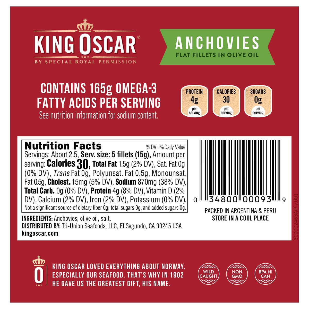 King Oscar Wild Caught Anchovy Fillets in Olive Oil - 2 oz