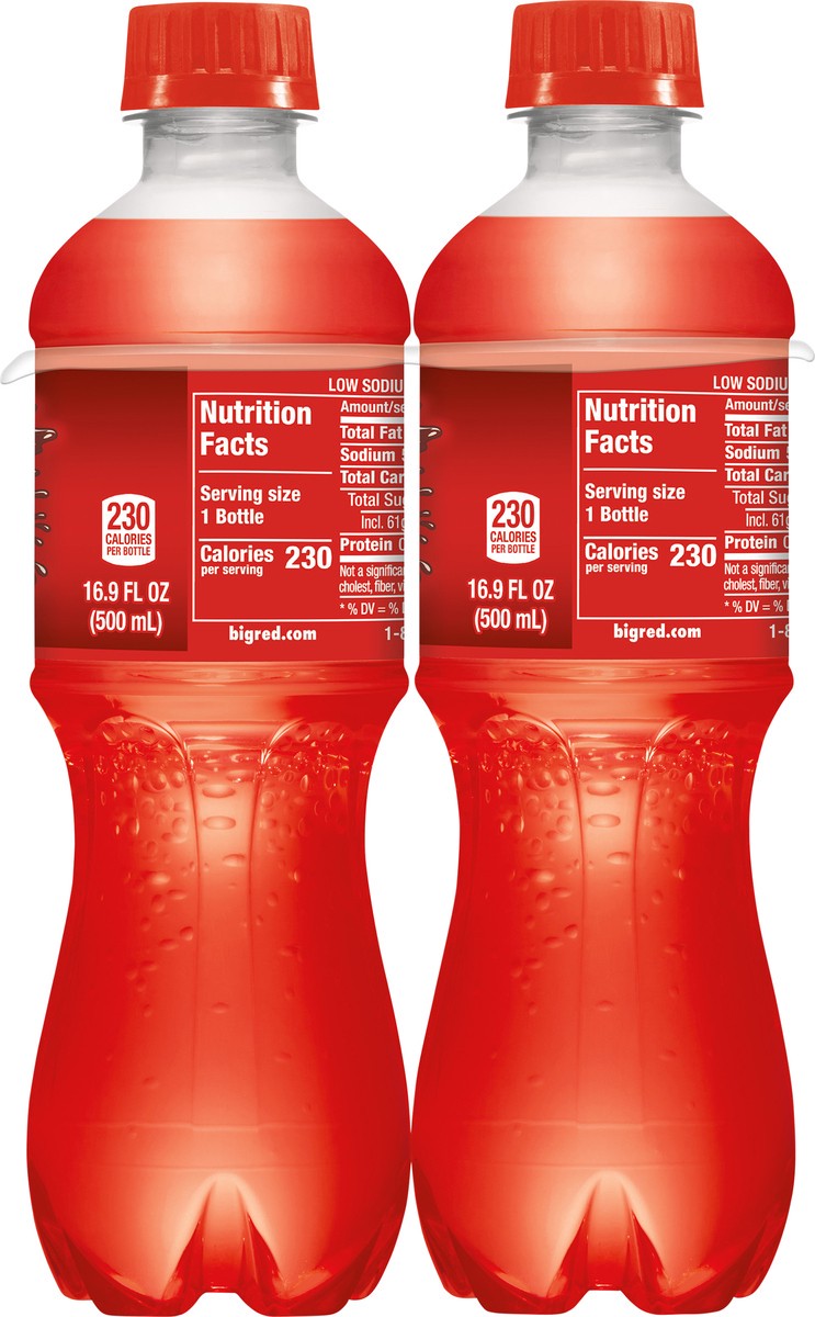 230 calories per bottle. Low sodium. Caffeine Content: 51 mg/16.9 fl oz. Est.1937. So sweet so smooth. bigred.com. Please recycle.