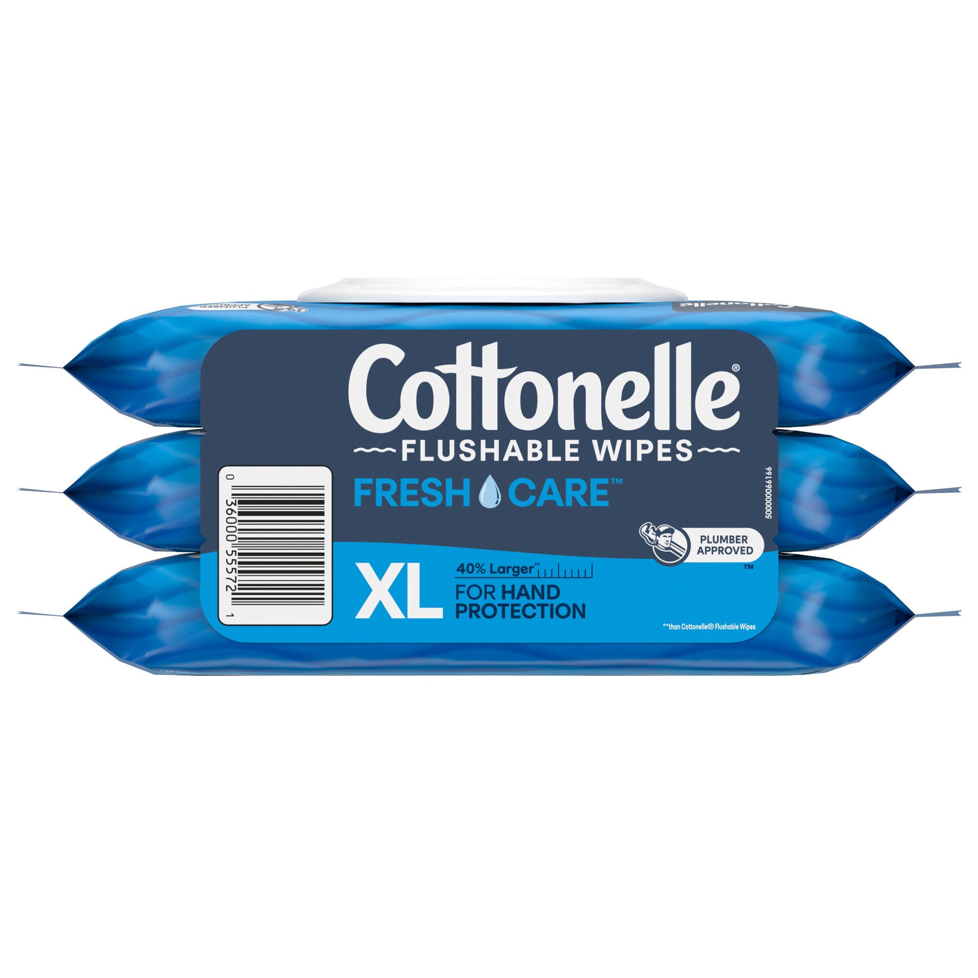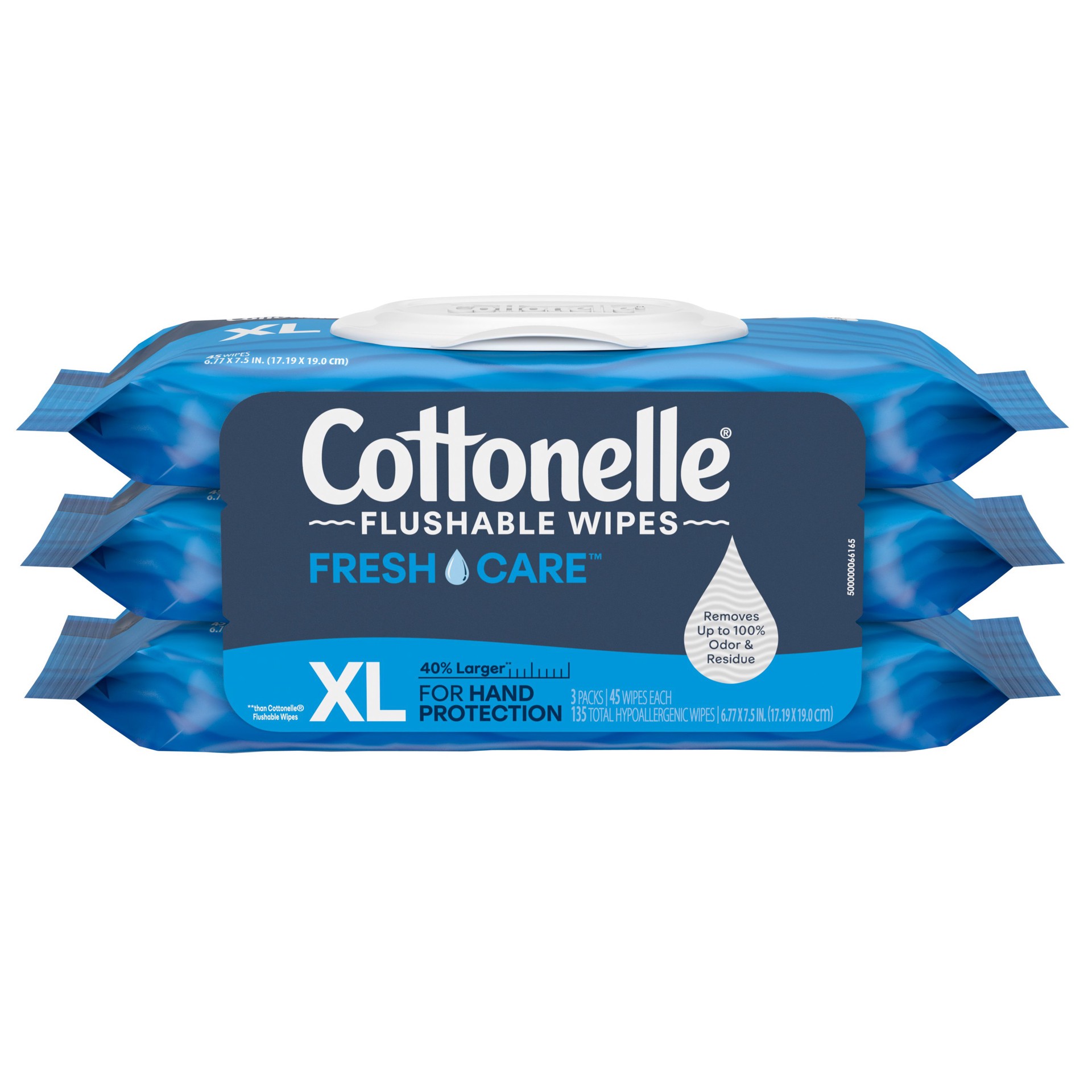 Cottonelle Xl Flushable Wet Wipes Flip-Top Packs With 45 Wipes Per Pack - 3 Count