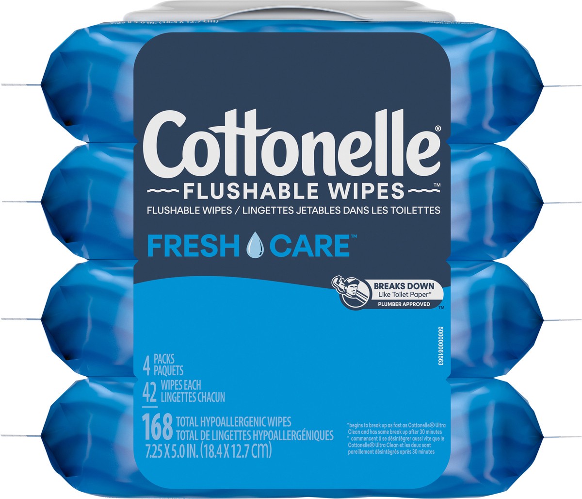 Cottonelle Fresh Care Flushable Wet Wipes 4 Flip-Top Packs With 42 Wipes Per Pack