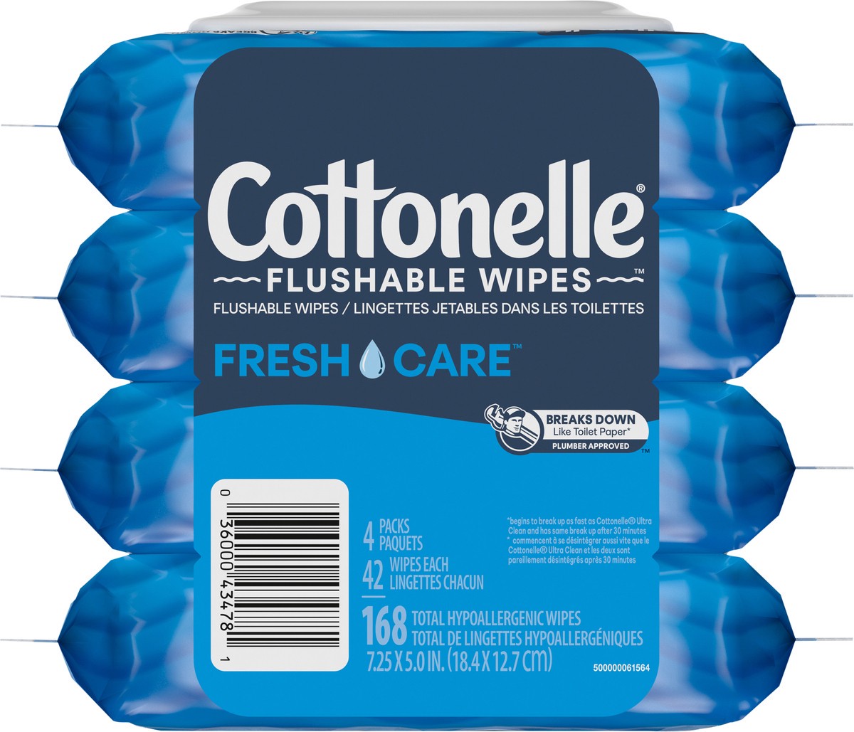 Cottonelle Fresh Care Flushable Wet Wipes 4 Flip-Top Packs With 42 Wipes Per Pack