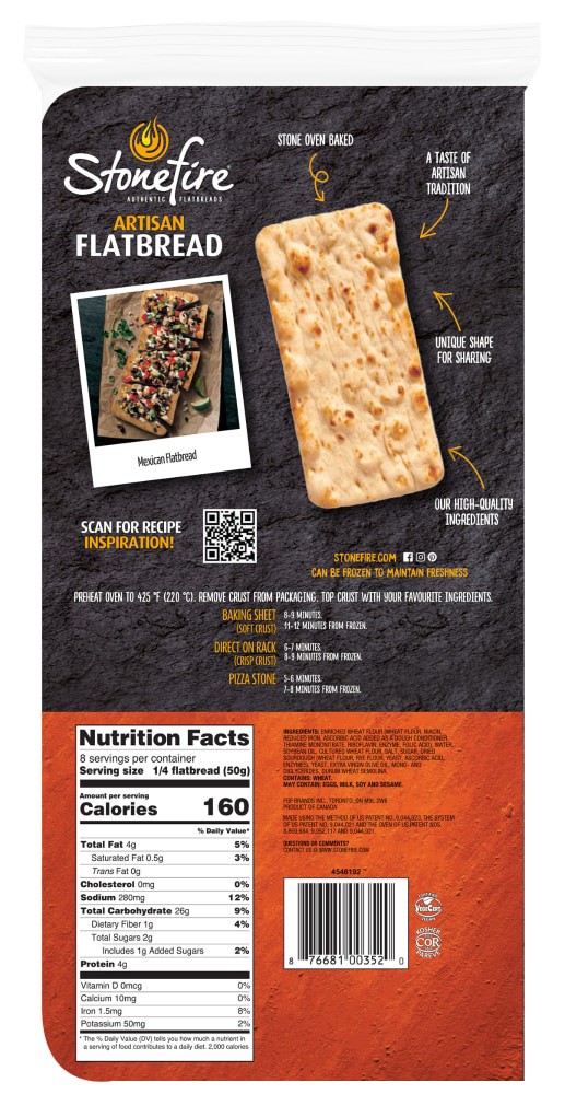 Enriched Wheat Flour (Wheat Flour, Niacin, Reduced Iron, Ascorbic Acid Added as a Dough Conditioner, Thiamine Mononitrate, Riboflavin Enzyme, Folic Acid), Water, Soybean Oil, Cultured Wheat Flour, Sal…