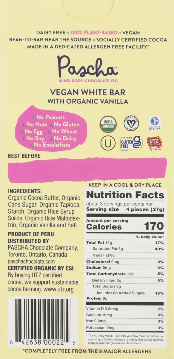 Pascha White Vegan Choc Bar