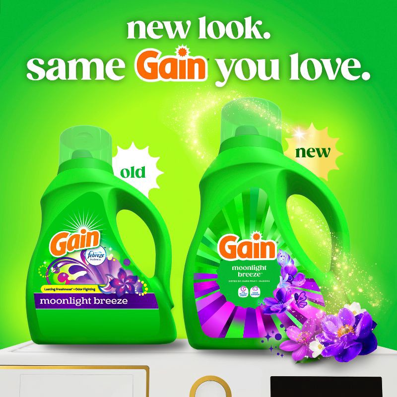 - LOOONG-LASTING: Gain Liquid Laundry Detergent Moonlight Breeze Scent capsules break for scent that continues to release during regular wear for lasting freshness for up to 6 weeks from wash until wear
