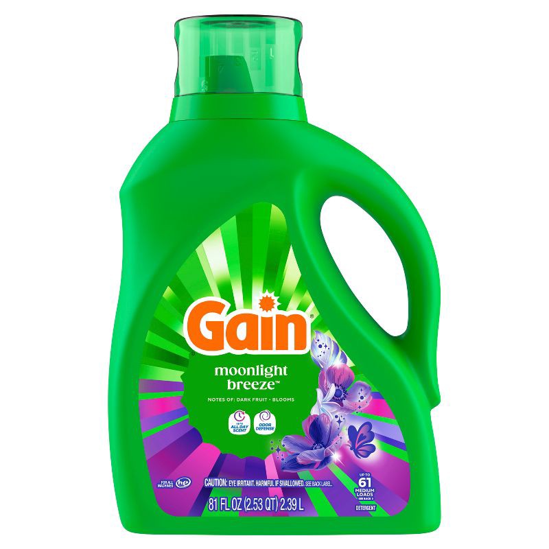 - Includes 88 fl oz of Gain Liquid Laundry Detergent, Moonlight Breeze Scent, enough for 61 loads