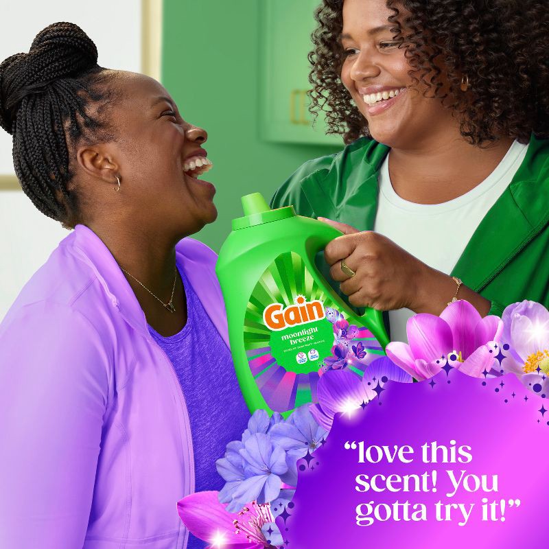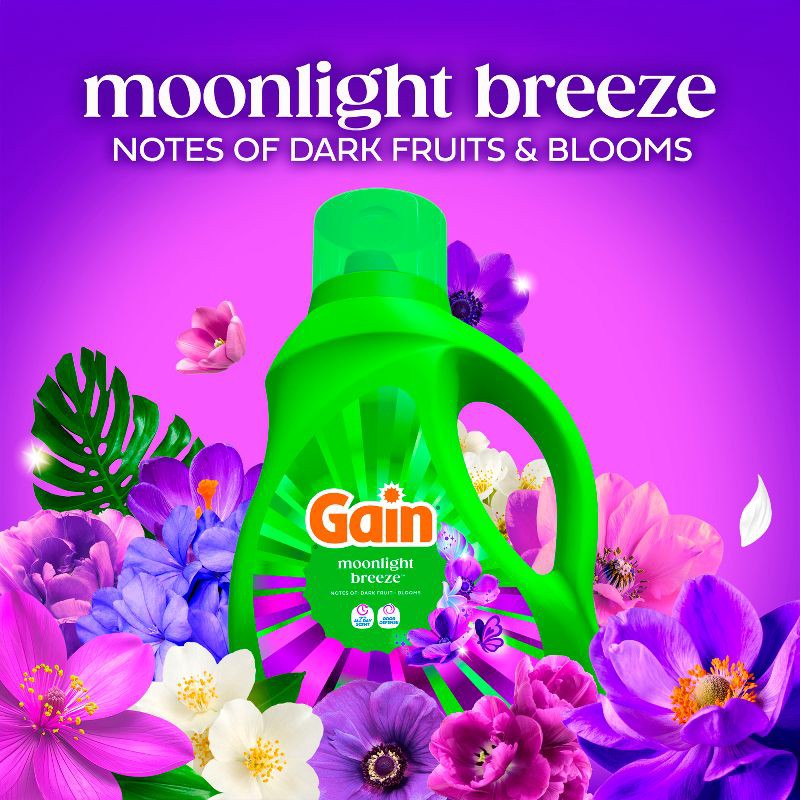 - RICH, LUXURIOUS SCENT: Evoking memories of a sultry summer evening, the rich, luxurious scent of Gain Moonlight Breeze Liquid Laundry Detergent is so seductive, you won't be able to keep your nose off your clothes