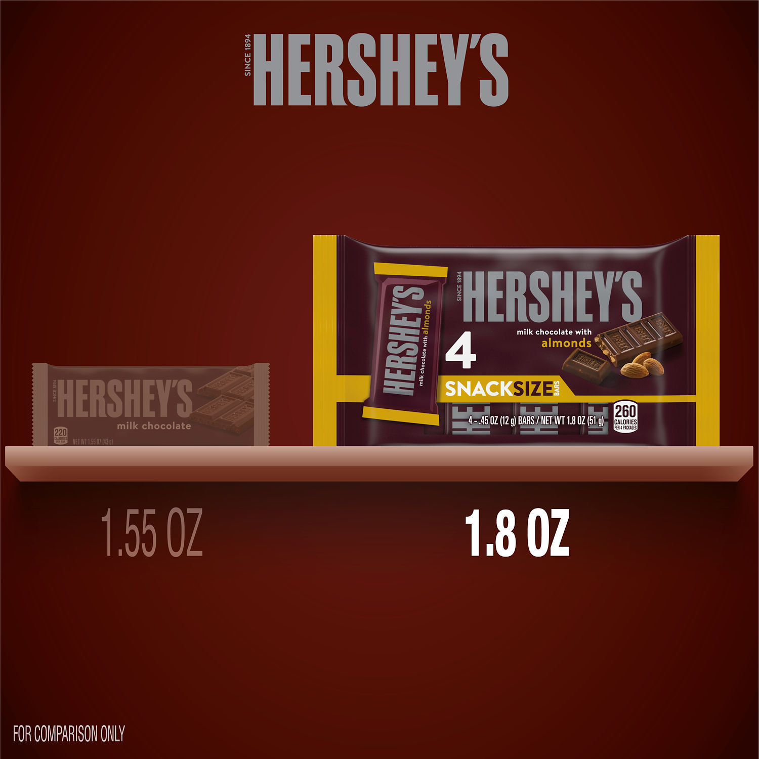 HERSHEY'S Milk Chocolate with Almonds Snack Size, Candy Bars, .45 oz (4 Count)