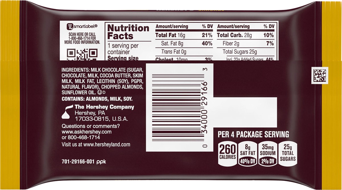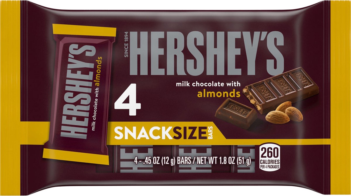 HERSHEY'S Milk Chocolate with Almonds Snack Size, Candy Bars, 0.45 oz (4 Count)