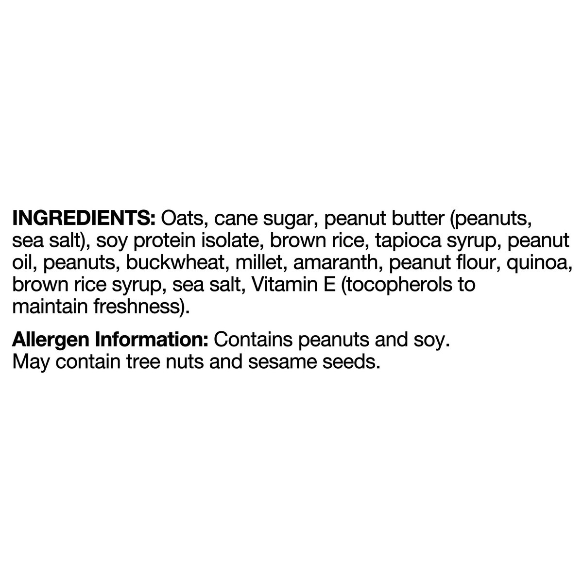 Oats, Cane Sugar, Peanut Butter (Peanuts, Sea Salt), Soy Protein Isolate, Brown Rice, Tapioca Syrup, Peanut Oil, Peanuts, Buckwheat, Millet, Amaranth, Peanut Flour, Quinoa, Brown Rice Syrup, Sea Salt,…