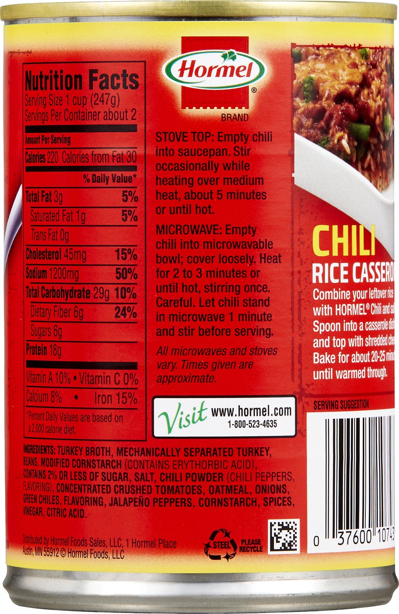Turkey Broth, Mechanically Separated Turkey, Beans, Modified Cornstarch (Contains Erythorbic Acid), Contains 2% or Less of Sugar, Salt, Chili Powder (Chili Peppers, Flavoring), Concentrated Crushed To…