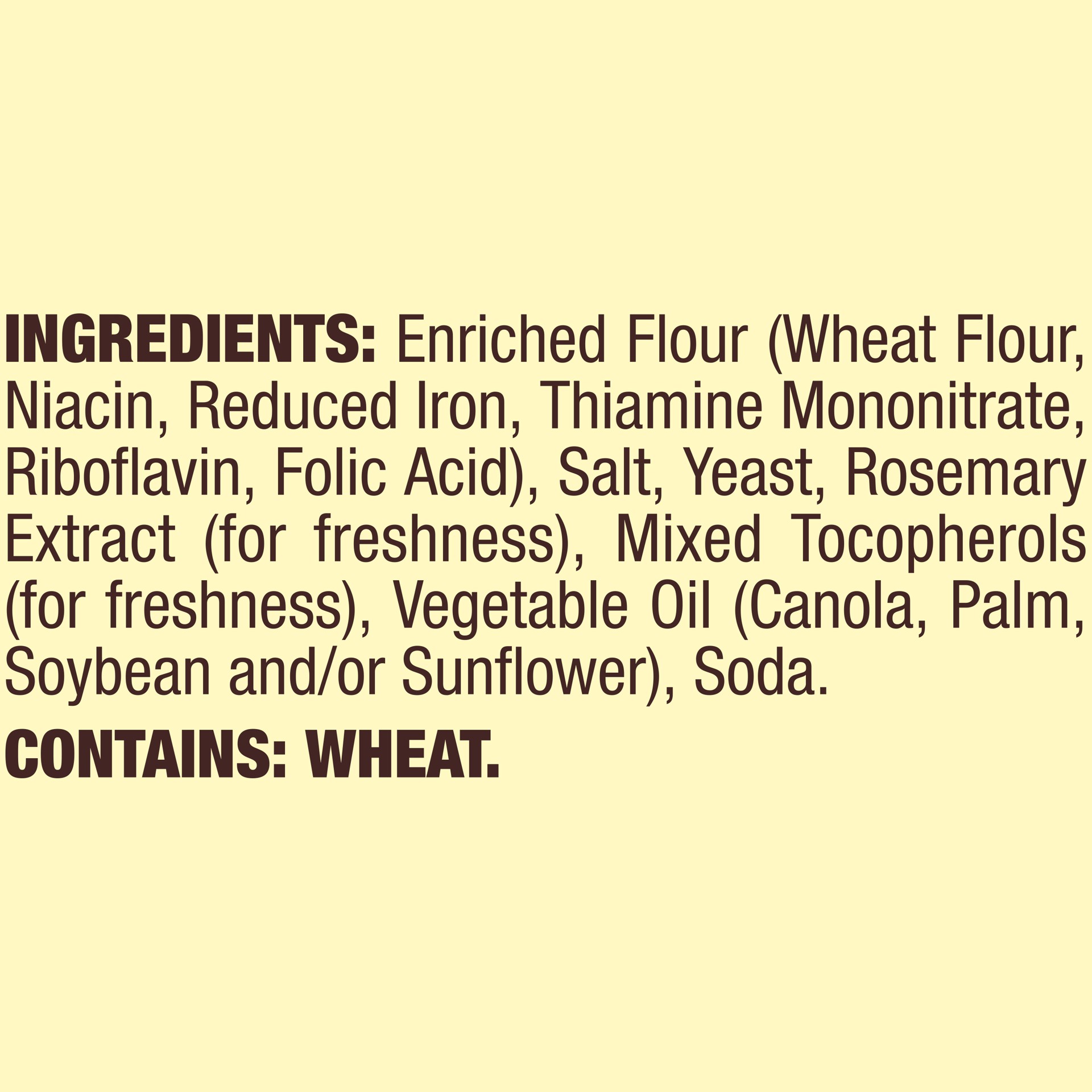 INGREDIENTS: ENRICHED FLOUR (WHEAT FLOUR, NIACIN, REDUCED IRON, THIAMINE MONONITRATE, RIBOFLAVIN, FOLIC ACID), SALT, YEAST, ROSEMARY EXTRACT (FOR FRESHNESS), MIXED TOCOPHEROLS (FOR FRESHNESS), VEGETAB…