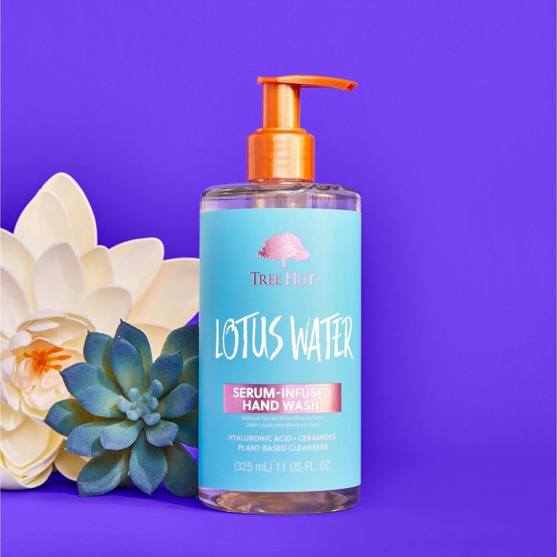 Tree Hut's Lotus Water Serum-Infused Hand Wash is formulated with gentle Plant-Based Cleansers, Hyaluronic Acid, and Ceramides to nourish and hydrate hands with strengthening skin care actives in a lo…