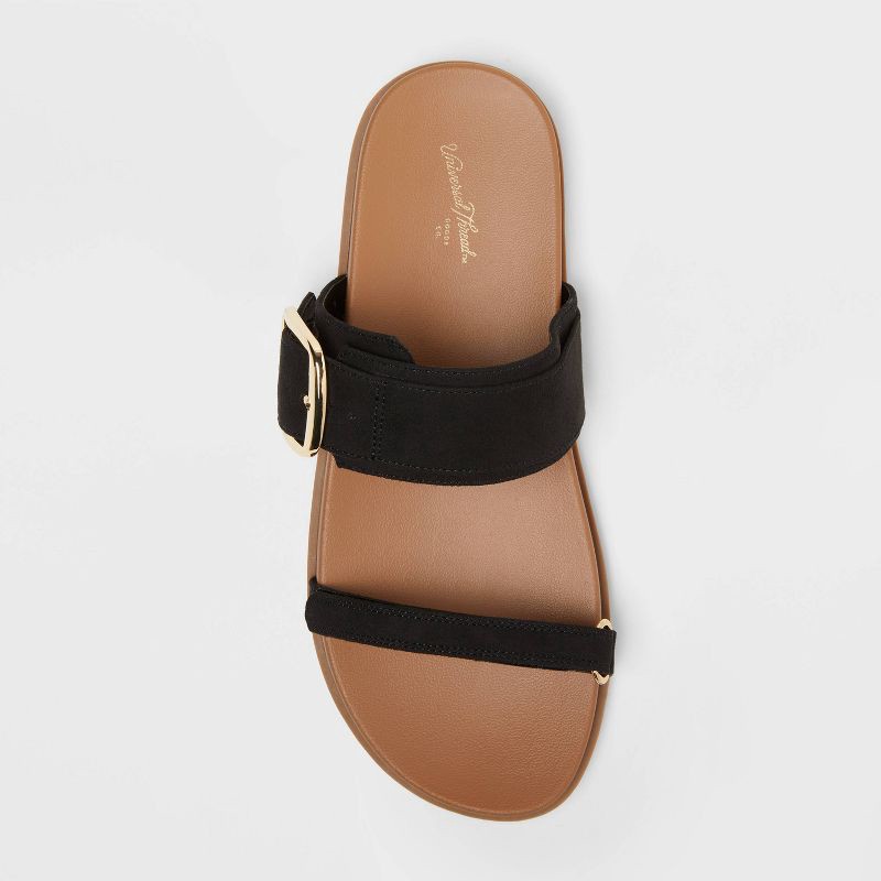 Slide into comfort with these Tyler Slide Sandals from Universal Thread™. These sandals feature double straps for a sophisticated look. The slip-on design offers ease of wear, while the instep strap w…