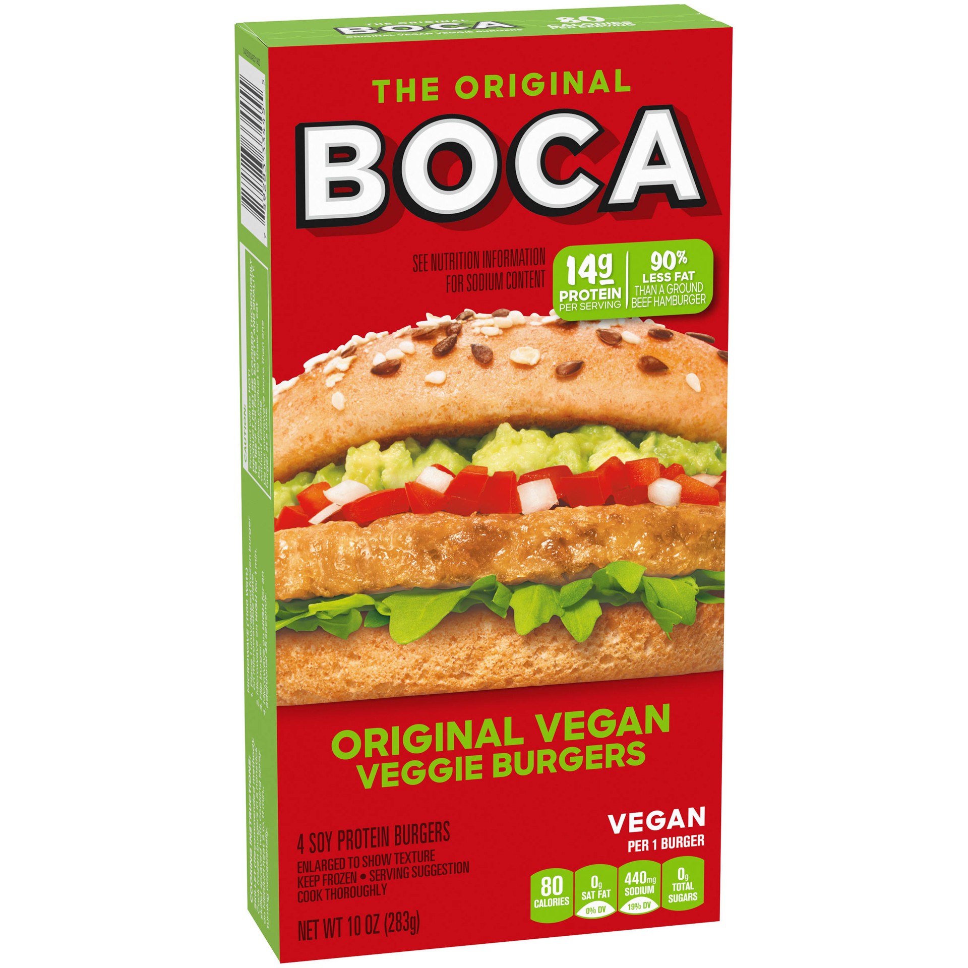 BOCA Original Vegan Veggie Burgers let you enjoy the classic taste of a juicy burger without the meat. Our veggie patties contain 14 grams of protein and are 80 calories each, with 90% less fat than a…