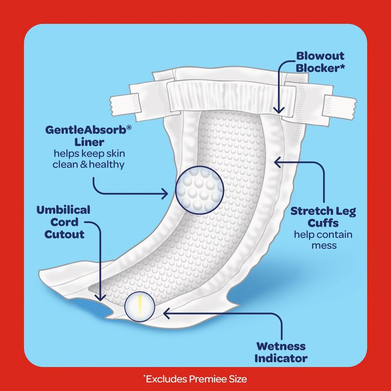 - The only leading national brand with front & back blowout blocker* (*Size 1 and 2 only)