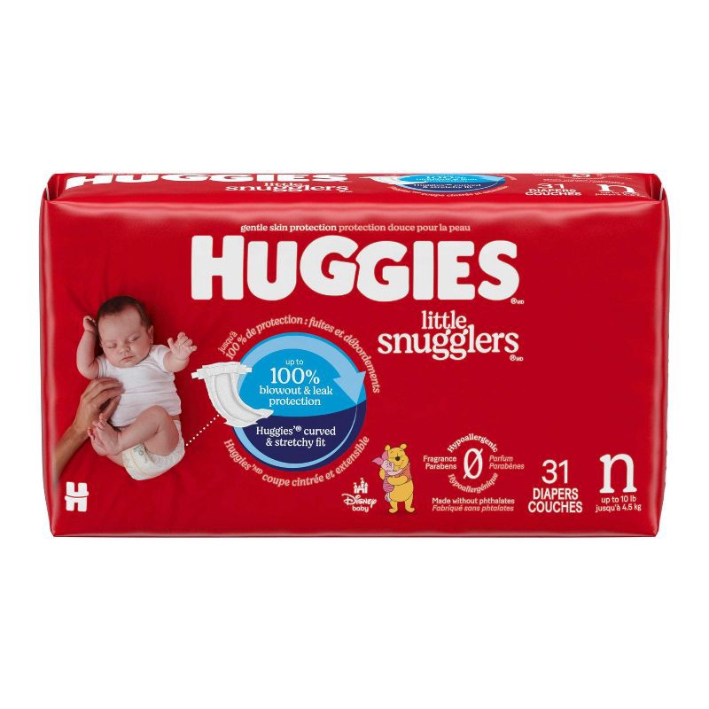 - Huggies Size Newborn Diapers: 31 Little Snugglers Baby Diapers (up to 10 lbs)