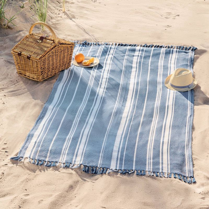 40"x72" Peshtemal Turkish Premium Lightweight Striped Oversized Beach Towel with Knotted Fringe Blue - Threshold™
