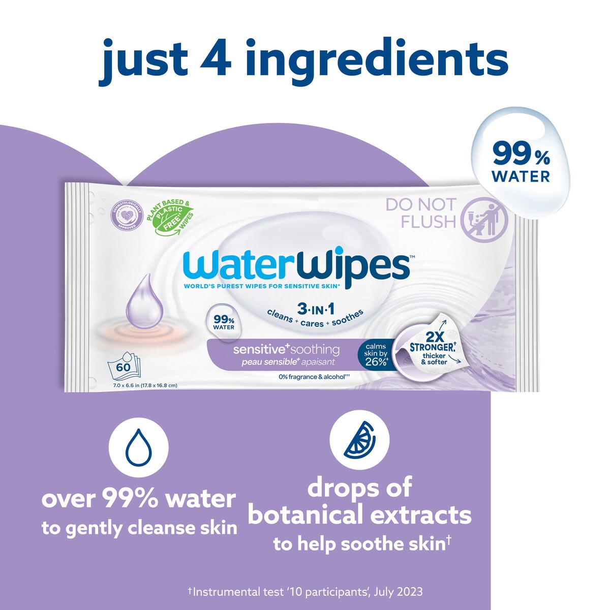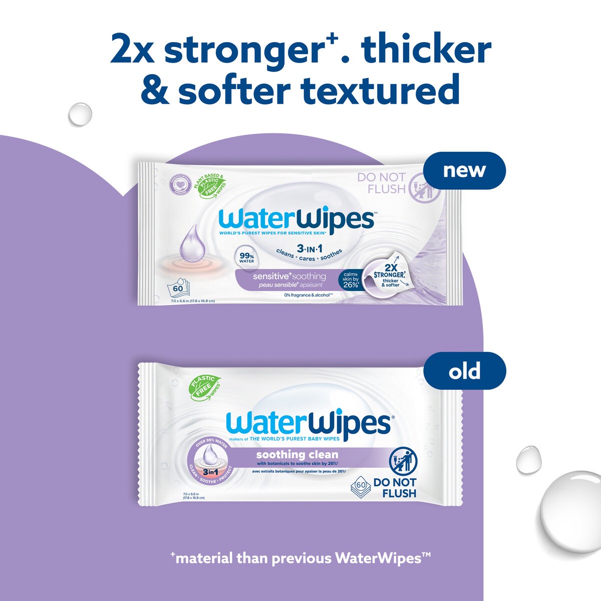 Introducing New & Improved WaterWipes, the World’s Purest Wipes for Sensitive Skin. Families can continue to trust WaterWipes Sensitive+ Soothing Wipes to gently clean, care and help soothe sensitive …