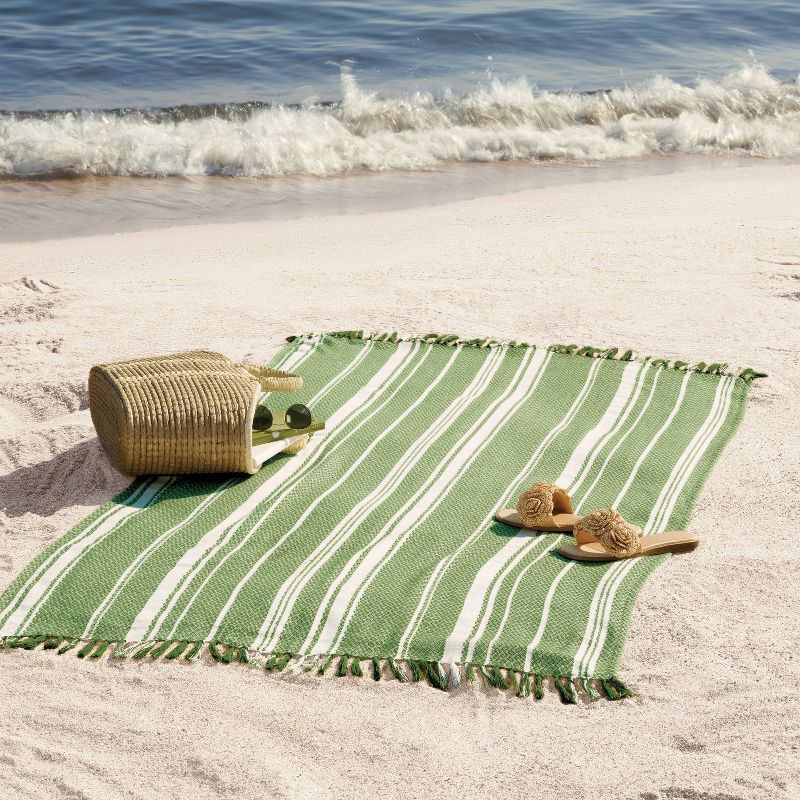 40"x72" Peshtemal Turkish Premium Lightweight Striped Oversized Beach Towel with Knotted Fringe Green - Threshold™