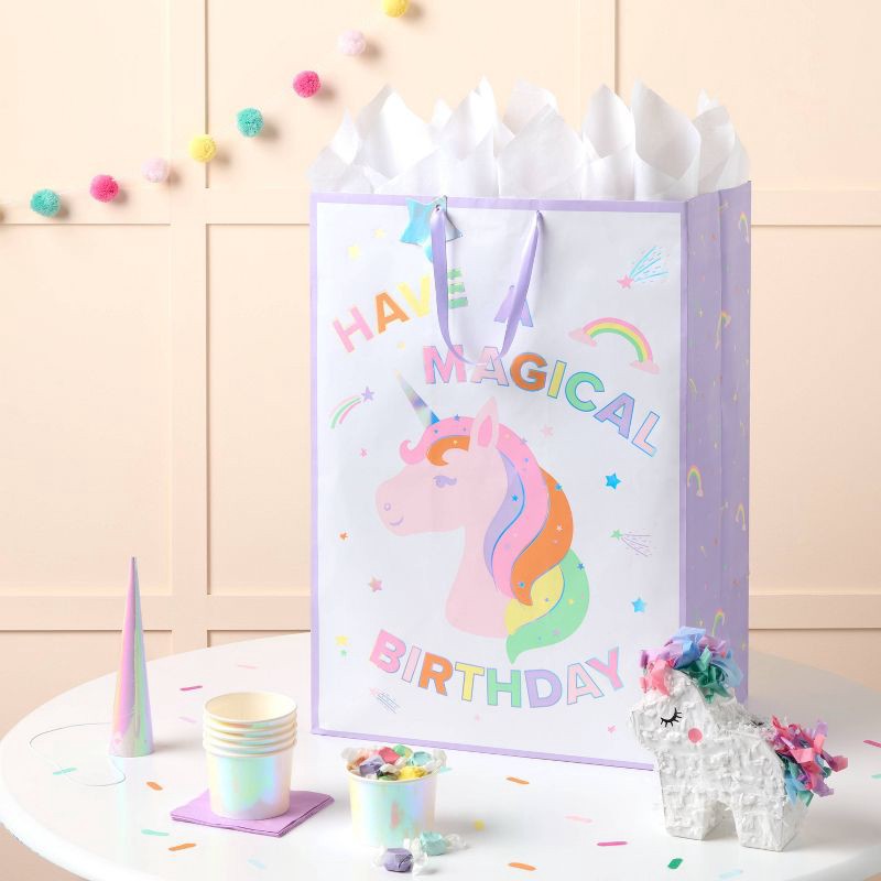- XXL unicorn-themed gift bag with “Have a Magical Birthday” print