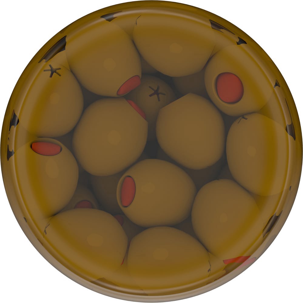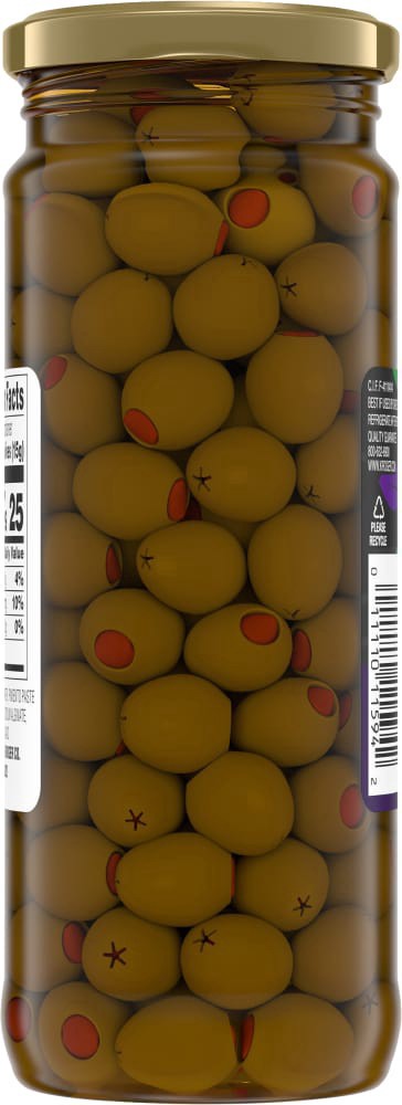 Olives, Water, Pimento Paste, (Water, Red Pimento, Sodium Alginate, Guar Gum), Salt, Citric Acid.