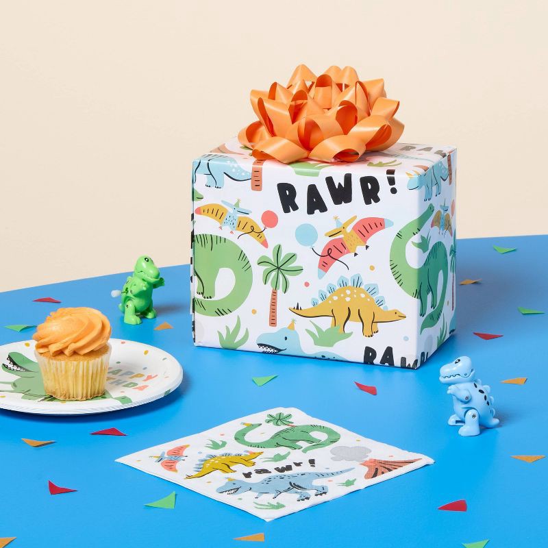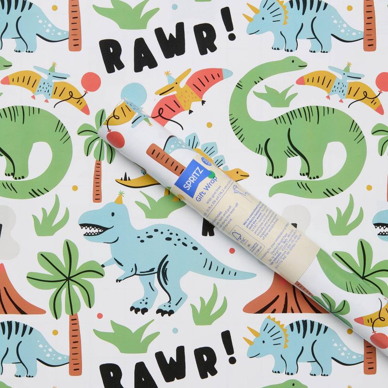 96"x30" Dinosaur Birthday Gift Wrapping Paper Colorful - Spritz™
