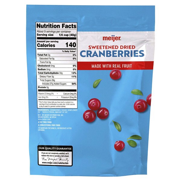 Add a sweet twist to your favorite recipes while getting a full serving of fruit with Meijer Sweetened Dried Cranberries. From a decadent fall harvest apple salad to cranberry orange muffins, this del…