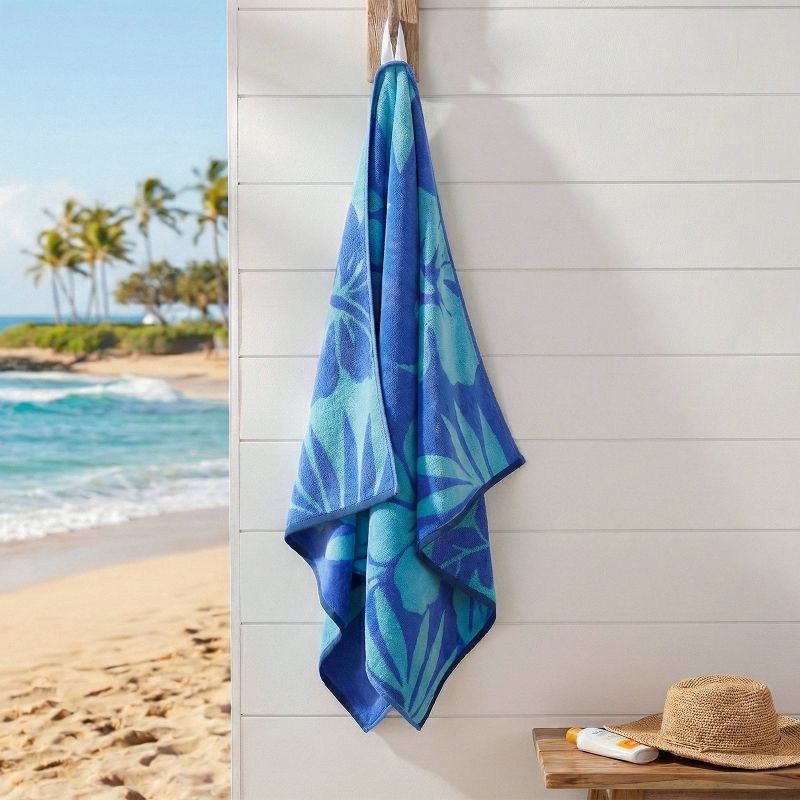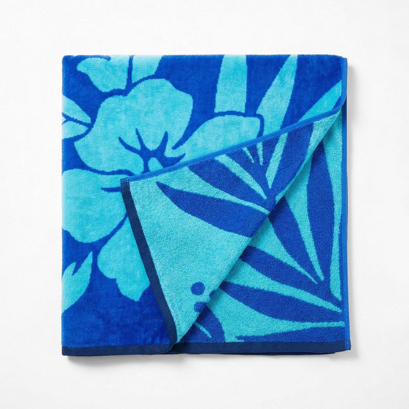 36"x72" Hibiscus Floral Oversized Beach Towel Blue