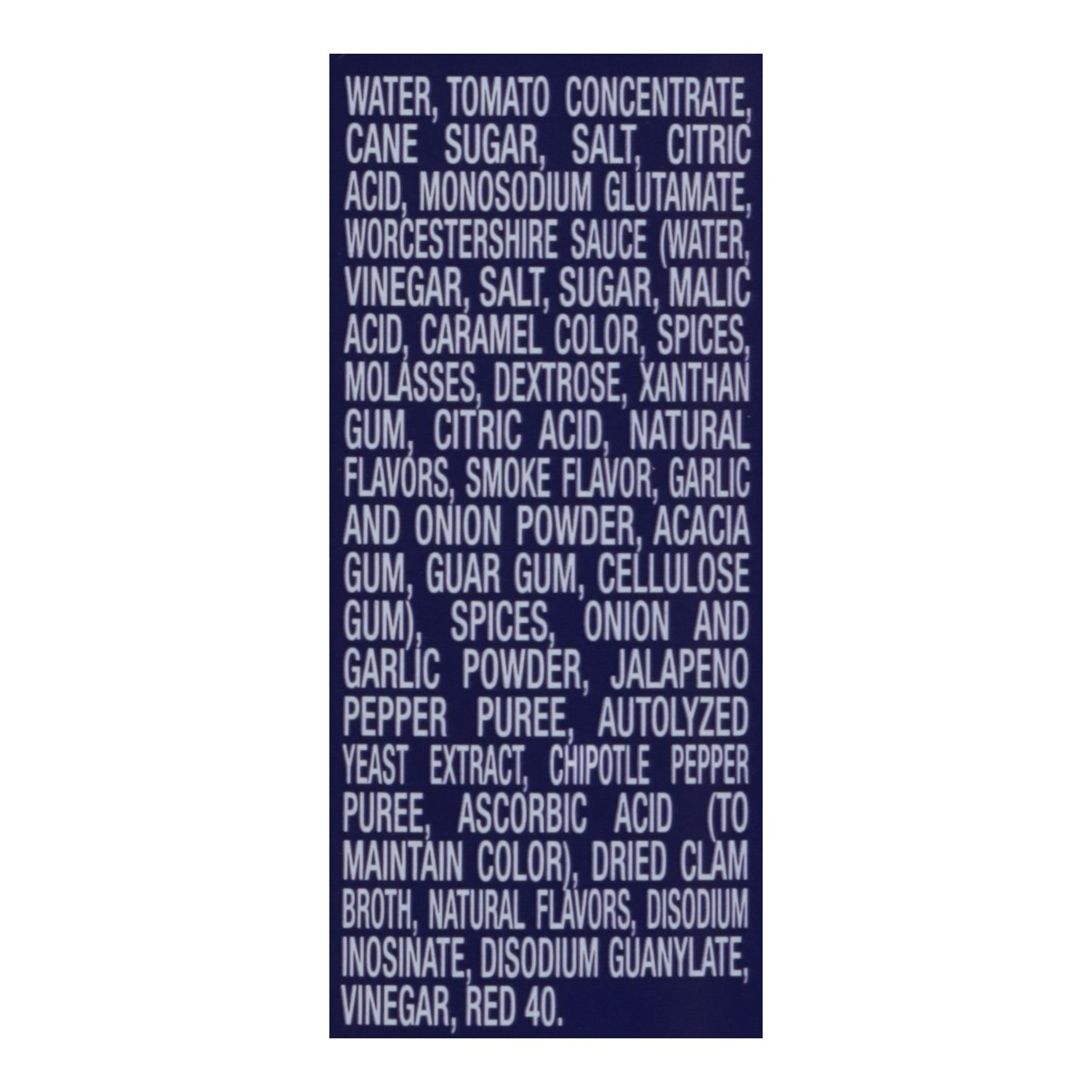 Water, Tomato Concentrate, Cane Sugar, Salt, Citric Acid, Monosodium Glutamate, Worcestershire Sauce (Water, Vinegar, Salt, Sugar, Malic Acid, Caramel Color, Spices, Molasses, Dextrose, Xanthan Gum, C…
